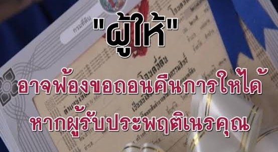 การฟ้องถอนคืนการให้ตามประมวลกฎหมายแพ่งและพาณิชย์มาตรา 513 ได้บัญญัติไว้ว่า ผู้ให้จะเรียกถอนคืนการให้เพราะเหตุผู้รับประพฤติเนรคุณได้ใน 3 กรณีต่อไปนี้คือ